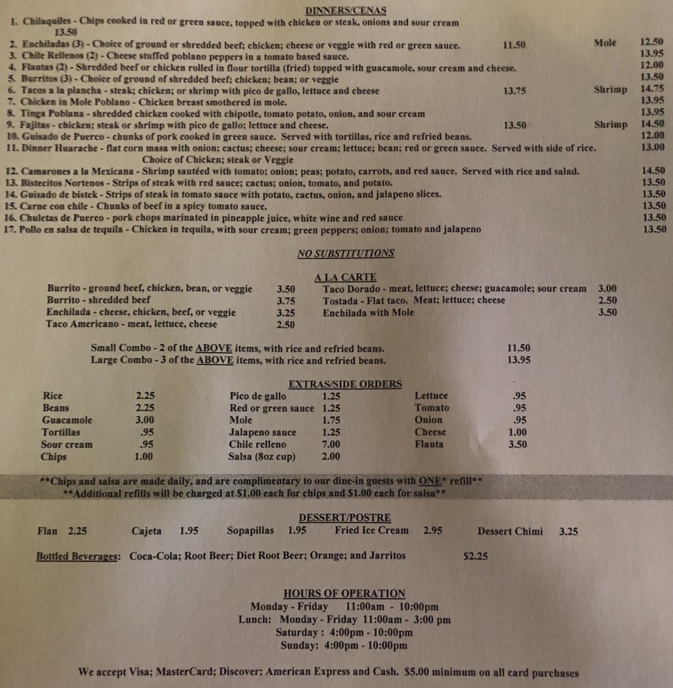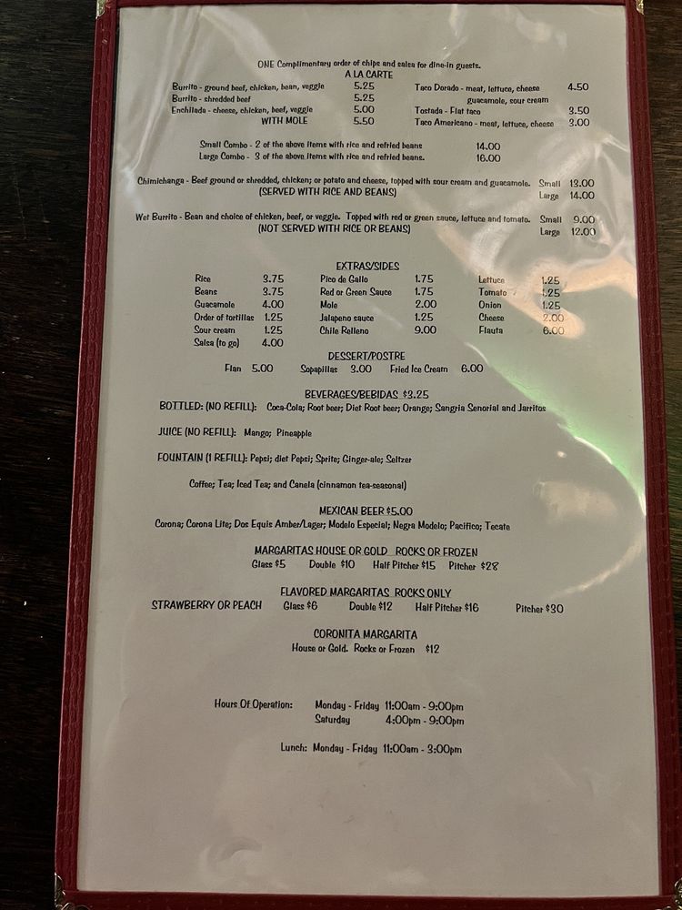 - Customer Favorites: Ground beef enchiladas, shrimp salad, and crispy chimichangas.