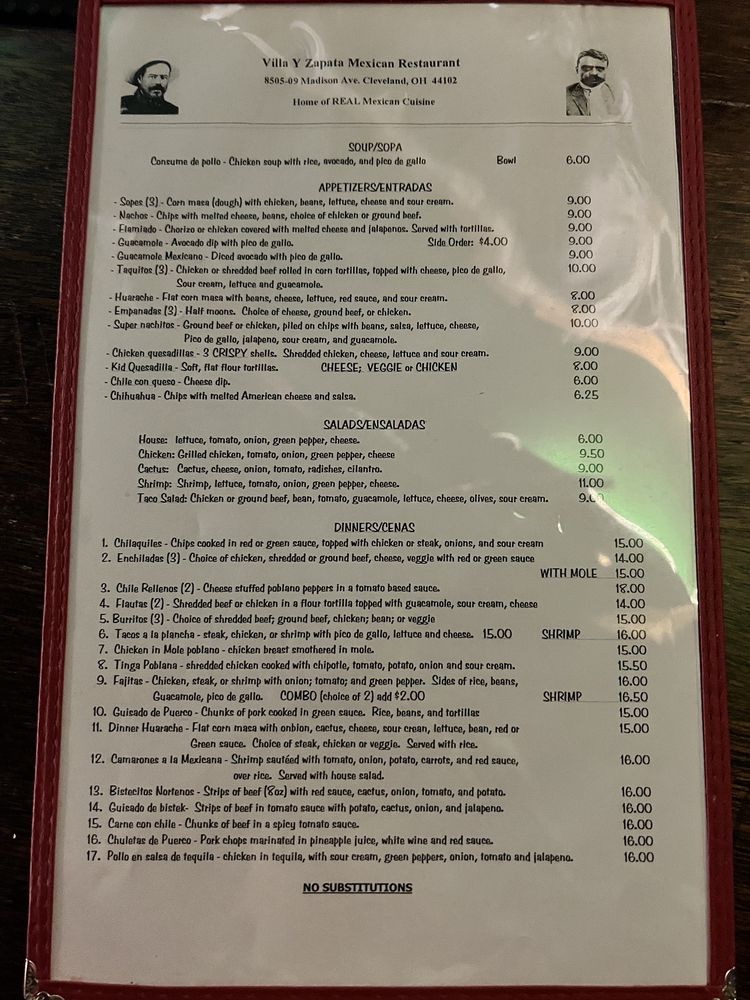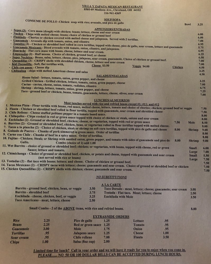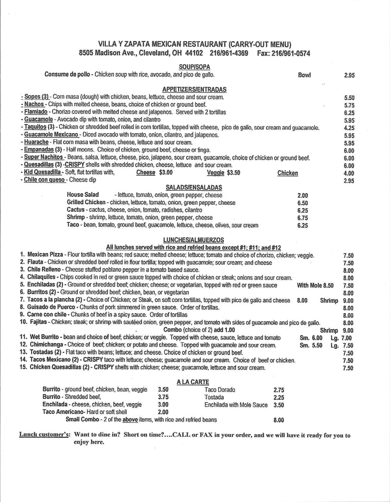 Nestled in Cleveland, Ohio, Villa Y Zapata presents an authentic taste of Mexico, drawing locals and visitors alike with its vibrant menu and warm atmosphere. Renowned for its delicious offerings, the restaurant boasts a diverse selection of dishes, from comforting Consume De Pollo soup to indulgent Chilaquiles and cheesy Chile Rellenos, catering to both vegetarians and meat lovers.